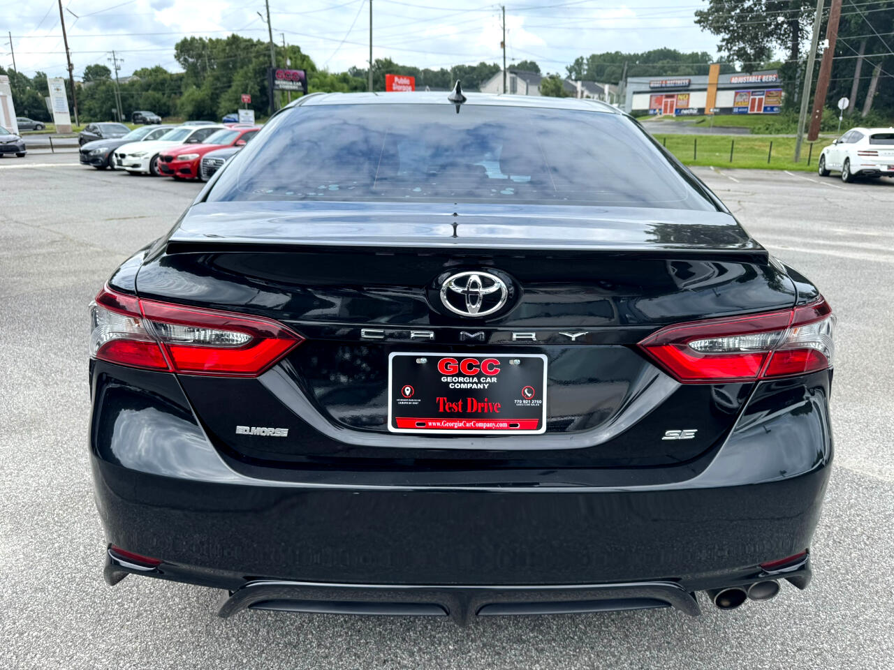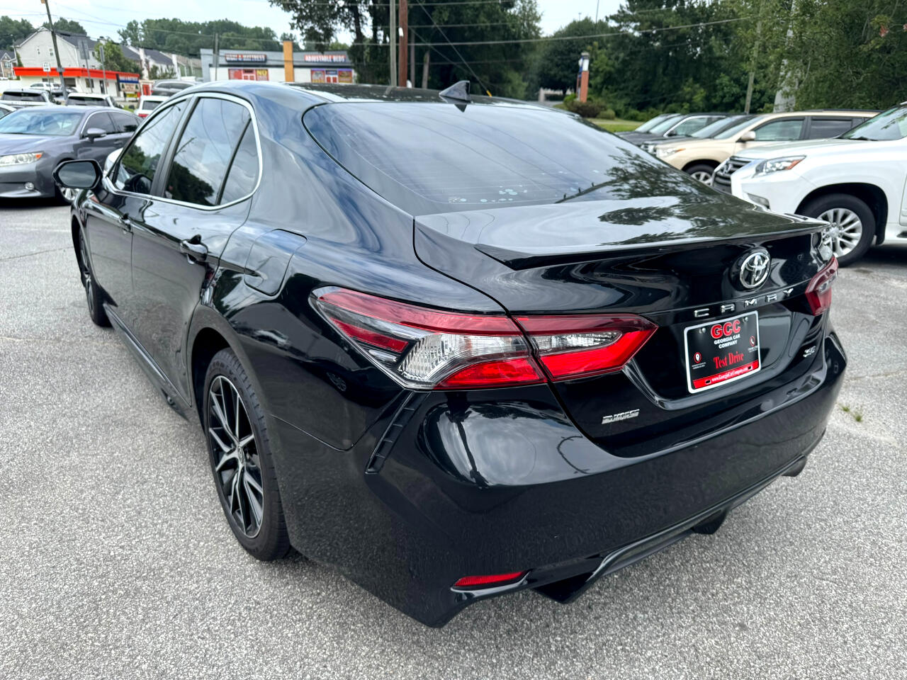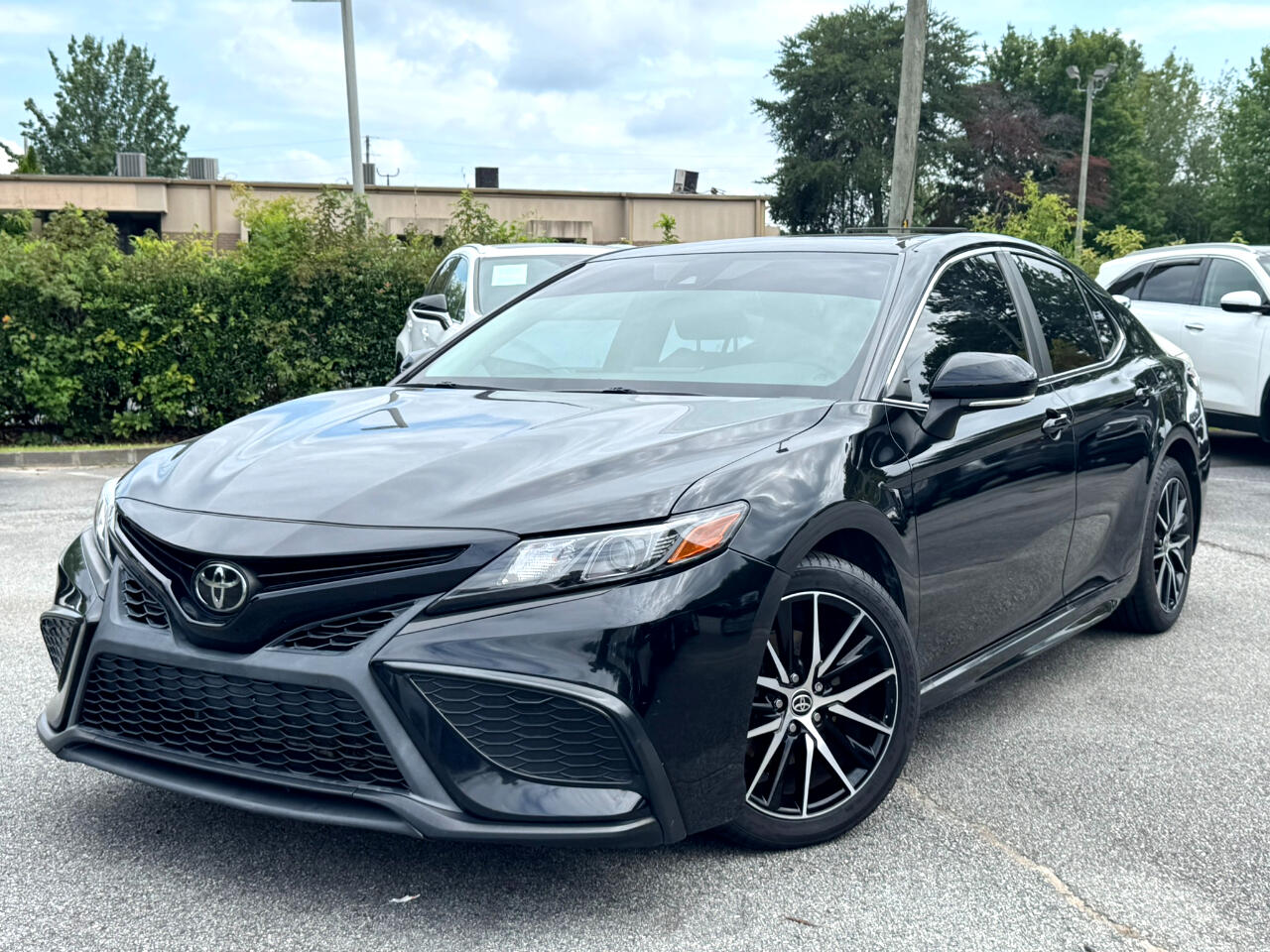 2021 TOYOTA CAMRY SE RWD, MIDNIGHT BLACK METALLIC ON BLACK, AUTOMATIC TRANSMISSION, SUNROOF, BACK-UP CAMERA, BLUETOOTH TECHNOLOGY, BLIND SPOT MONITOR, ALLOY WHEEL, APPLE CARPLAY, ANDROID AUTO, ALLOY WHEELS, AUTOMATED CRUISE CONTROL, AM / FM STEREO, SATELLITE RADIO, PREMIUM SOUND SYSTEM, POWER DOOR LOCKS, POWER WINDOWS, POWER STEERING, POWER HEATED EXTERIOR MIRRORS, POWER SEATS, LANE DEPARTURE WARNING, REMOTE KEYLESS ENTRY, TIRE PRESSURE MONITOR, TRACTION CONTROL, STABILITY CONTROL, REAR SPOILER, CRUISE, TILT, ABS, COLD AC, HEAT, LOADED, PLEASE CONTACT GEORGIA CAR COMPANY FOR MORE INFORMATION AT 770-921-2760.