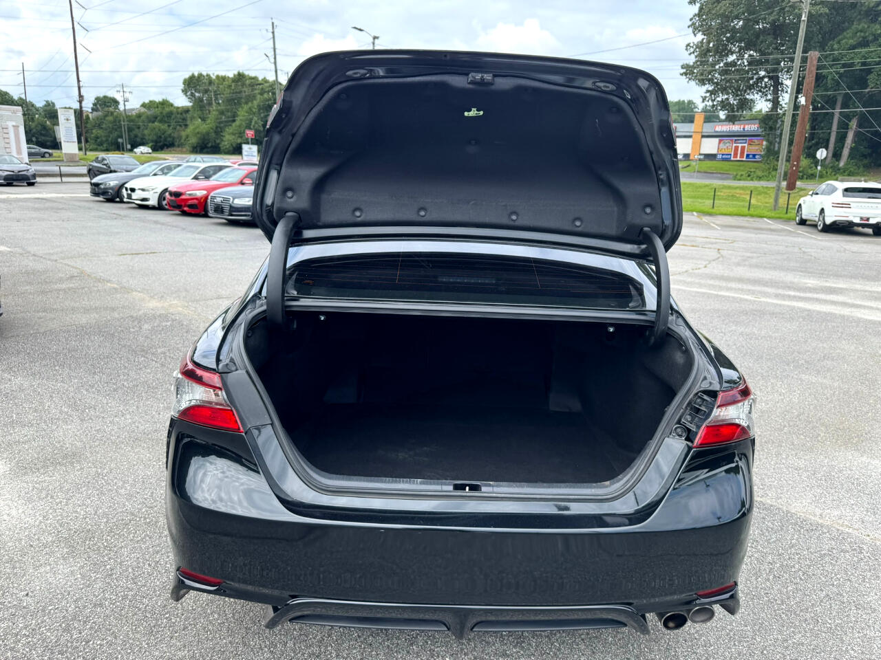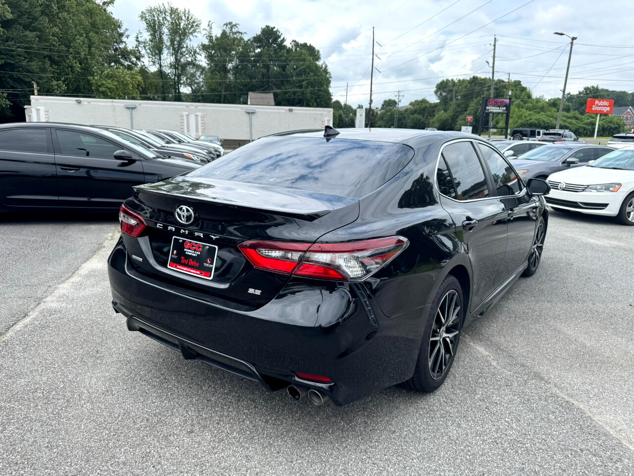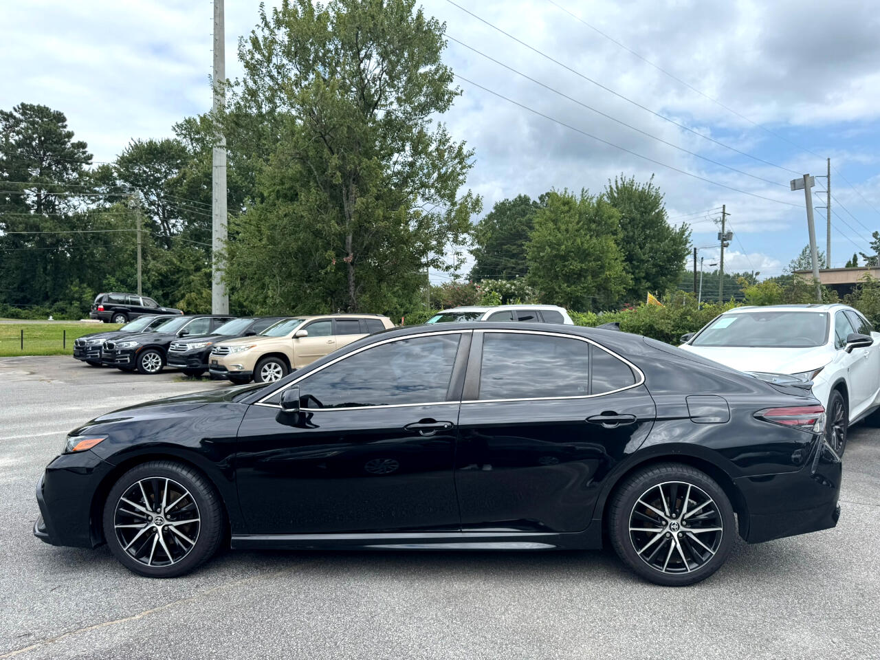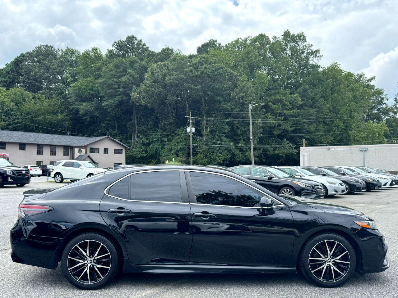 2021 TOYOTA CAMRY SE RWD, MIDNIGHT BLACK METALLIC ON BLACK, AUTOMATIC TRANSMISSION, SUNROOF, BACK-UP CAMERA, BLUETOOTH TECHNOLOGY, BLIND SPOT MONITOR, ALLOY WHEEL, APPLE CARPLAY, ANDROID AUTO, ALLOY WHEELS, AUTOMATED CRUISE CONTROL, AM / FM STEREO, SATELLITE RADIO, PREMIUM SOUND SYSTEM, POWER DOOR LOCKS, POWER WINDOWS, POWER STEERING, POWER HEATED EXTERIOR MIRRORS, POWER SEATS, LANE DEPARTURE WARNING, REMOTE KEYLESS ENTRY, TIRE PRESSURE MONITOR, TRACTION CONTROL, STABILITY CONTROL, REAR SPOILER, CRUISE, TILT, ABS, COLD AC, HEAT, LOADED, PLEASE CONTACT GEORGIA CAR COMPANY FOR MORE INFORMATION AT 770-921-2760.