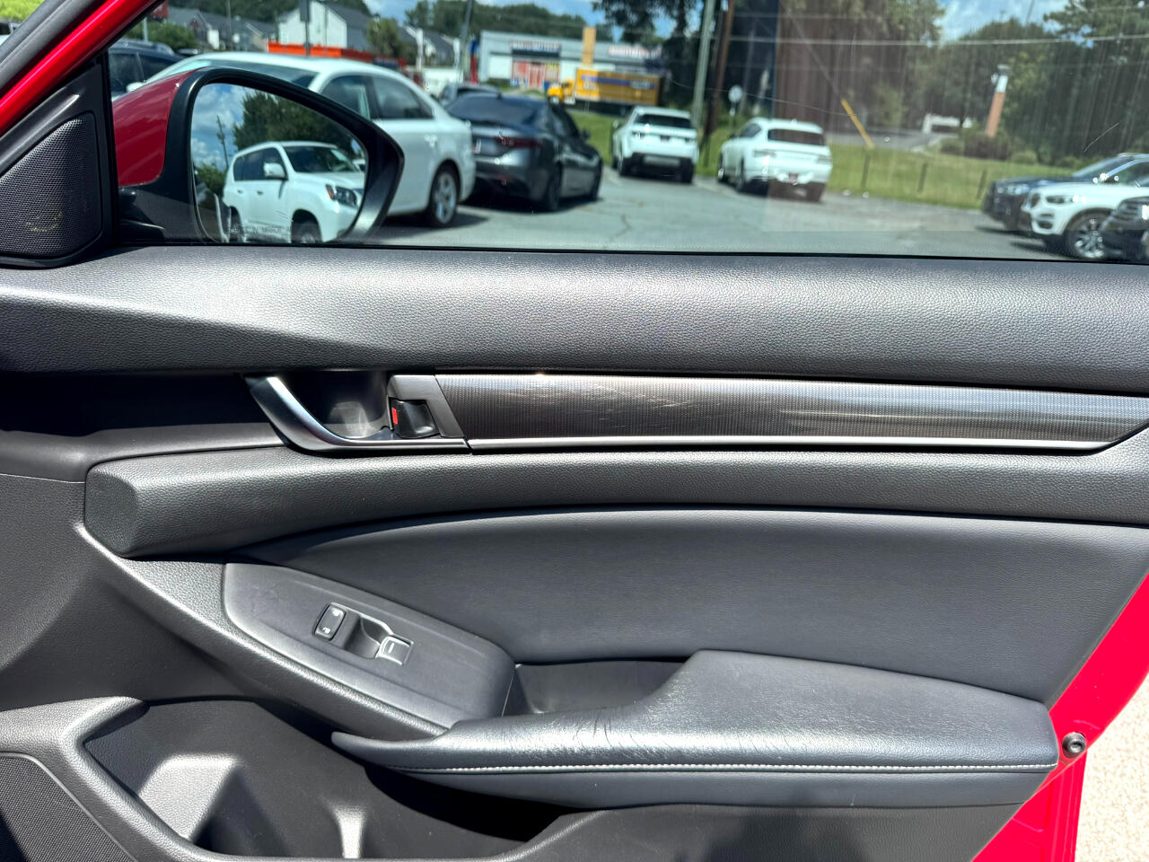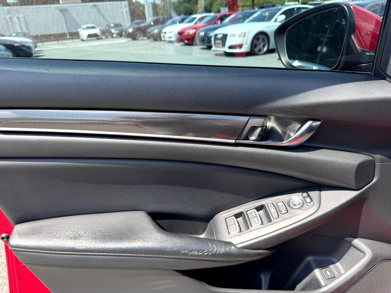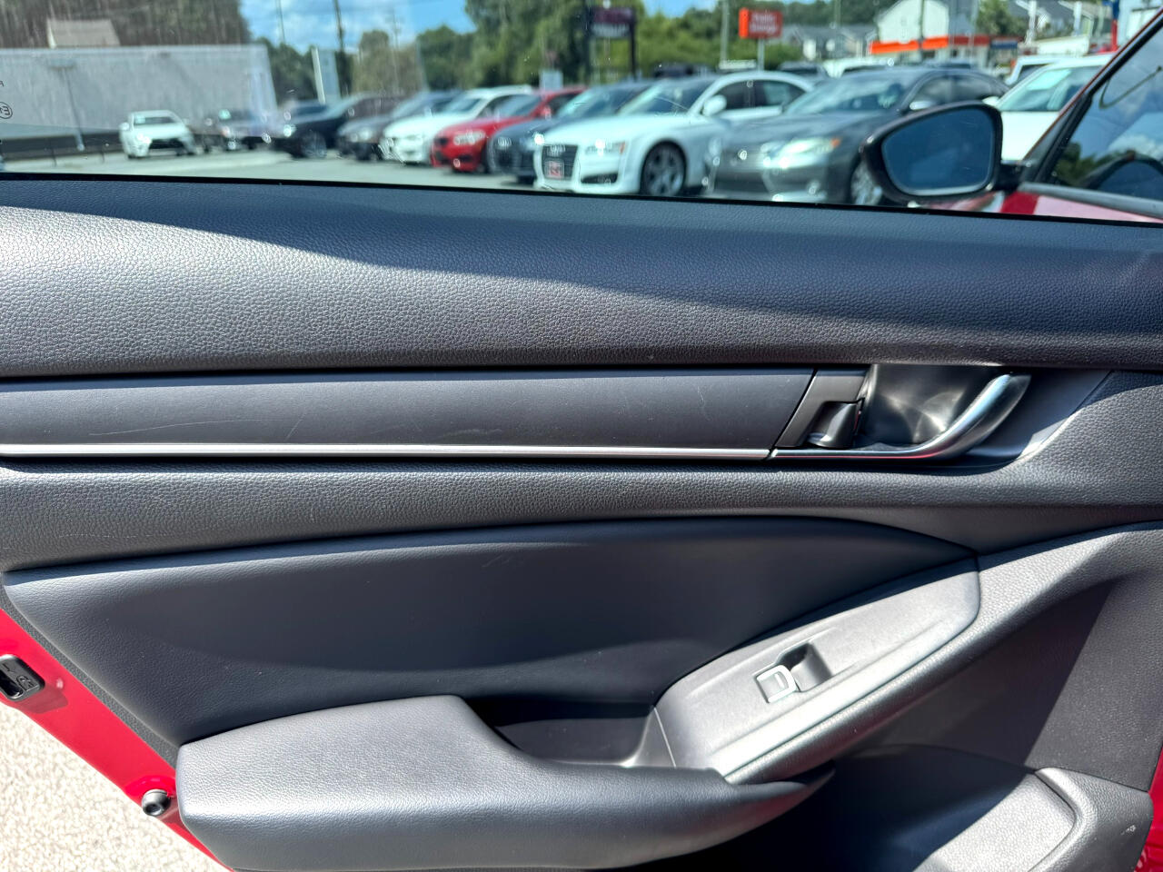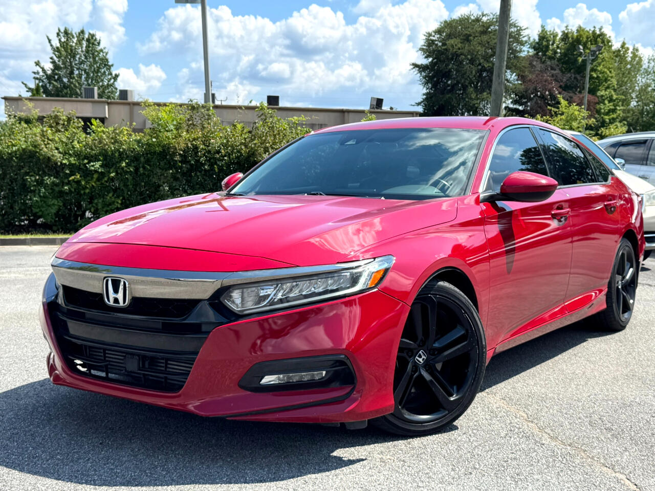 2018 HONDA ACCORD SPORTS FWD, RADIANT RED METALLIC ON BLACK, AUTOMATIC TRANSMISSION, BACK-UP CAMERA, BLUETOOTH TECHNOLOGY, BLIND SPOT MONITOR, ALLOY WHEEL, APPLE CARPLAY, ANDROID AUTO, AUTOMATED CRUISE CONTROL, AM / FM STEREO, SATELLITE RADIO, LANE DEPARTURE WARNING, PREMIUM SOUND SYSTEM, DUAL ZONE CLIMATE CONTROL, POWER DOOR LOCKS, POWER WINDOWS, POWER HEATED EXTERIOR MIRRORS, POWER STEERING, TURBO CHARGED ENGINE, KEYLESS ENTRY, REMOTE START, TIRE PRESSURE MONITOR, TRACTION CONTROL, STABILITY CONTROL, CRUISE, TILT, ABS, COLD AC, HEAT, LOADED, PLEASE CONTACT GEORGIA CAR COMPANY FOR MORE INFORMATION AT 770-921-2760.